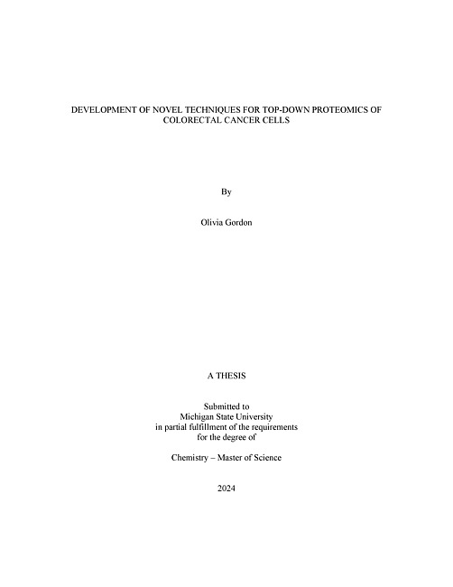 DEVELOPMENT OF NOVEL TECHNIQUES FOR TOP-DOWN PROTEOMICS OF COLORECTAL CANCER CELLS