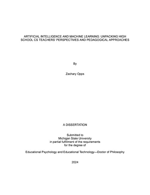 ARTIFICIAL INTELLIGENCE AND MACHINE LEARNING : UNPACKING HIGH SCHOOL CS TEACHERS' PERSPECTIVES AND PEDAGOGICAL APPROACHES