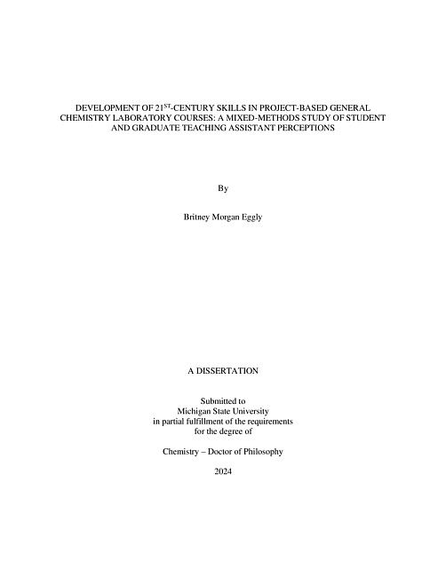 DEVELOPMENT OF 21ST-CENTURY SKILLS IN PROJECT-BASED GENERAL CHEMISTRY LABORATORY COURSES : A MIXED-METHODS STUDY OF STUDENT AND GRADUATE TEACHING ASSISTANT PERCEPTIONS