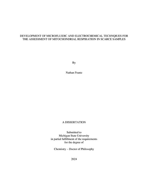 DEVELOPMENT OF MICROFLUIDIC AND ELECTROCHEMICAL TECHNQIUES FOR THE ASSESSMENT OF MITOCHONDRIAL RESPIRATION IN SCARCE SAMPLES