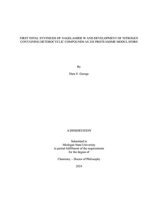 FIRST TOTAL SYNTHESIS OF NAGELAMIDE W AND DEVELOPMENT OF NITROGEN CONTAINING HETEROCYCLIC COMPOUNDS AS 20S PROTEASOME MODULATORS
