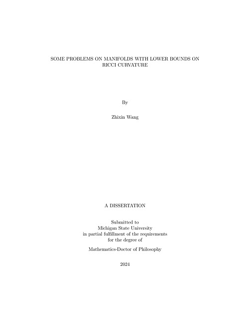 Some Problems on Manifolds with Lower Bound on Ricci Curvature