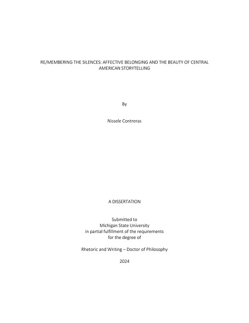 In this dissertation, I examine the individual and collective subject positions of U.S. Central Americans by analyzing both their representation and exclusion in cultural texts, which include a wide variety of poetry, film, zines, memoir, and social media platforms. Writing about Central Americans in the U.S. has led me to consider key characteristics of transnational identity-building: dislocation, affective (non)belonging, migration barriers, cultural negotiation, and diasporic storytelling as resistance. Through this analysis, I engage with storytelling as a survival tactic and an everyday practice that U.S. Central Americans use to negotiate their cultural and material (non)belonging within dominant narratives that dehumanize them. I draw from a range of interdisciplinary approaches, especially cultural rhetorics, rhetorical theory, writing studies, film theory, Central American Studies, and queer theory. This project works to broaden the category of Latinx Rhetoric as it’s currently theorized in Rhetoric and Composition Studies. By unpacking how U.S. Central Americans compose identity through specific rhetorical strategies, I suggest how the specificities of one’s individual and collective identity must be attended to in order to truly make space for marginalized voices/bodies within our discipline.