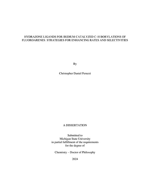 HYDRAZONE LIGANDS FOR IRIDIUM CATALYZED C–H BORYLATIONS OF FLUOROARENES : STRATEGIES FOR ENHANCING RATES AND SELECTIVITIES