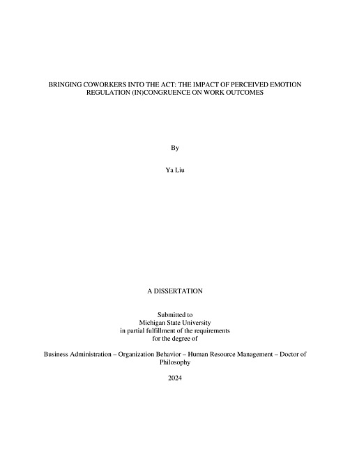 BRINGING COWORKERS INTO THE ACT : THE IMPACT OF PERCEIVED EMOTION REGULATION (IN)CONGRUENCE ON WORK OUTCOMES