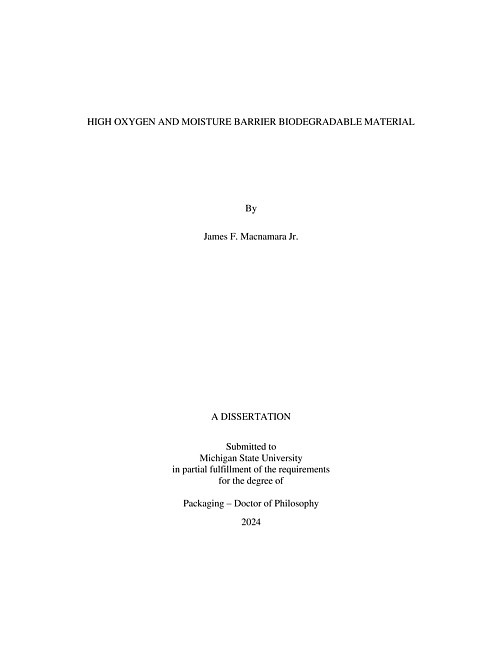 HIGH OXYGEN AND MOISTURE BARRIER BIODEGRADABLE MATERIAL