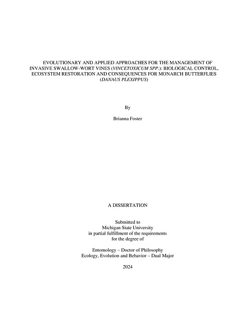 Evolutionary and applied approaches for the management of invasive swallow-wort vines (Vincetoxicum spp.) : biological control, ecosystem restoration and consequences for monarch butterflies (Danaus plexippus)