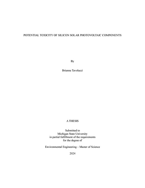 Potential Toxicity of Silicon Solar Photovoltaic Components