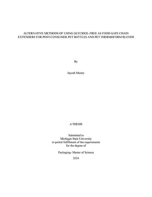 The accumulation of plastics such as poly (ethylene terephthalate) (PET) in landfills and oceans poses a significant environmental threat. Chain extenders can help to divert post-consumer PET from landfills to manufacturing. However, the current chain extenders are glycidol-based with toxicity concerns. This thesis work aims to develop non-toxic, glycidol-free chain extenders for post-consumer mixed bottle-grade PET (PET-B) and thermoform PET (PET-T). In one project, a new chain extender, mono epoxy styrene (MES), is used to enhance the rPET characteristics such as rheological, mechanical, and thermal. The incorporation of chain extenders in varying proportions showed significant improvement in intrinsic viscosity, along with an improvement in impact properties. In another project, glycidol- and styrene-free epoxy acrylate chain extenders with terminal (PEAT-BA) and internal (PEAI-BA) epoxy groups were tested in PET-B/PET-T blends, and improvements in the mechanical, rheological, and thermal properties better than the commercial chain extender Joncryl ADR (J) were observed. This research will promote the utilization of recycled PET, potentially reducing greenhouse gas emissions by 50%, decreasing landfilling, and protecting the environment from microplastic pollution.