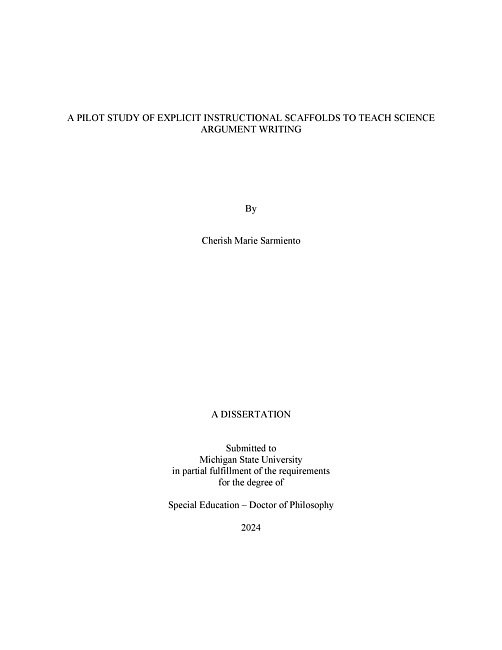 A PILOT STUDY OF EXPLICIT INSTRUCTIONAL SCAFFOLDS TO TEACH SCIENCE ARGUMENT WRITING