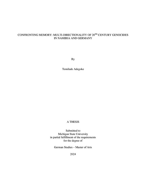 CONFRONTING MEMORY : MULTI-DIRECTIONALITY OF 20TH CENTURY GENOCIDES IN NAMIBIA AND GERMANY