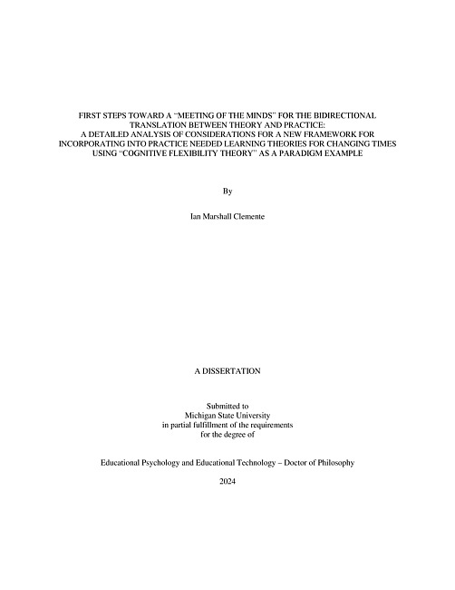 FIRST STEPS TOWARD A “MEETING OF THE MINDS” FOR THE BIDIRECTIONAL TRANSLATION BETWEEN THEORY AND PRACTICE : A DETAILED ANALYSIS OF CONSIDERATIONS FOR A NEW FRAMEWORK FOR INCORPORATING INTO PRACTICE NEEDED LEARNING THEORIES FOR CHANGING TIMES USING “COG...