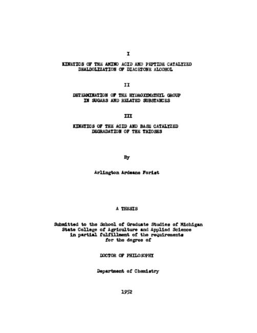 I. Kinetics of the amino acid and peptide catalyzed dealdolization of diacetone alcohol. II. Determination of the hydroxymethyl group in sugars and related substances. III. Kinetics of the acid and base catalysed degradation of trioses