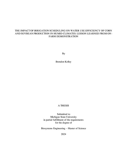 THE IMPACT OF IRRIGATION SCHEDULING ON WATER USE EFFICIENCY OF CORN AND SOYBEAN PRODUCTION IN HUMID CLIMATES : LESSON LEARNED FROM ON-FARM DEMONSTRATION