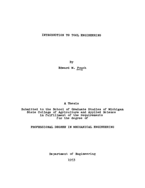 Introduction to tool engineering