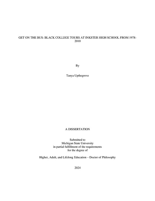 This qualitative study examines the Black college tours implemented at Inkster High School which exposed high school students to Historically Black Colleges and Universities (HBCUs) throughout the midwest, south, and mid-Atlantic regions of the United States. While there is substantial grey literature that describes the Black college tour experience, there is limited empirical research which defines Black college tours, describes how they are designed and implemented, and how they inform the college choice process for participating students. I conducted a phenomenological case study comprised of interviews and document analysis to summarize the historic context of the Inkster High School Black college tour and synthesized the experience of teachers, students, and parent volunteers who participated in the tours over thirty-two years. I learned Black college tours—as a cultural artifact—helped students navigate the college choice process and shaped their ongoing perspective about HBCUs. Black college tours and similar experiences hold significance for former students, parents, and teachers who experienced school closures and grapple with institutional mourning. This study contributes an example of Black student college choice (Chapman et al., 2020) and draws from community cultural wealth (Yosso, 2005) and fugitive pedagogy (Givens, 2021) to situate Black college tours within existing literature on college choice. The study further acknowledges how a small predominantly Black local school district partnered with community to provide college access programming for its students.