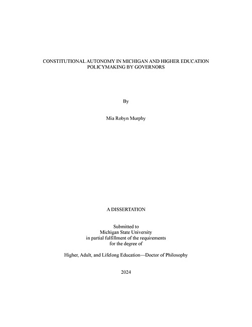 Constitutional Autonomy in Michigan and Higher Education Policymaking By Governors