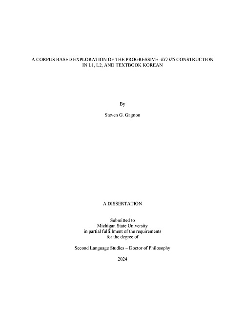 A CORPUS BASED EXPLORATION OF THE PROGRESSIVE -KO ISS CONSTRUCTION IN L1, L2, AND TEXTBOOK KOREAN