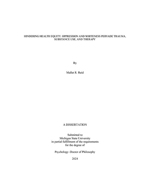 Hindering Health Equity : Oppression and Whiteness Pervade Trauma, Substance Use, and Therapy