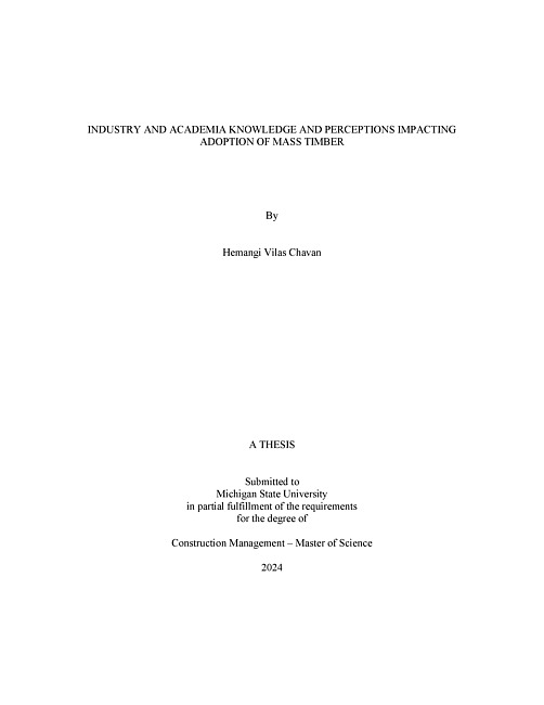Industry and Academia Knowledge and Perceptions Impacting adoption of Mass Timber