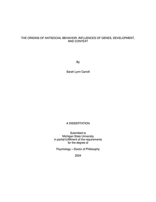 THE ORIGINS OF ANTISOCIAL BEHAVIOR : INFLUENCES OF GENES, DEVELOPMENT, AND CONTEXT