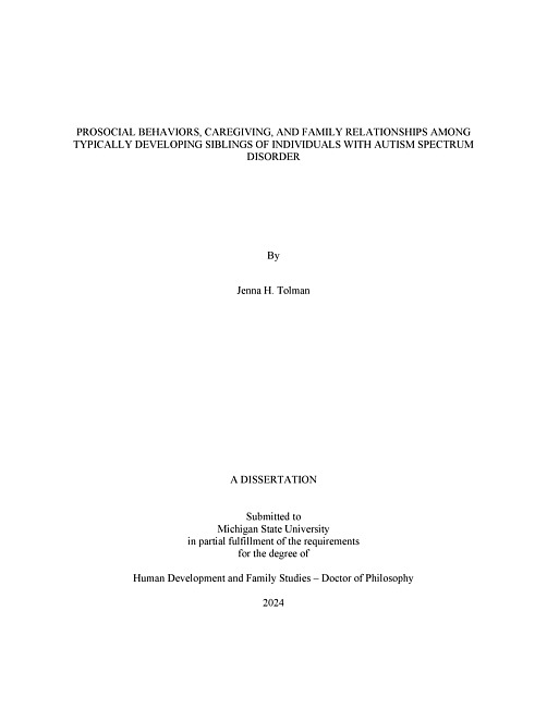 PROSOCIAL BEHAVIORS, CAREGIVING, AND FAMILY RELATIONSHIPS AMONG TYPICALLY DEVELOPING SIBLINGS OF INDIVIDUALS WITH AUTISM SPECTRUM DISORDER