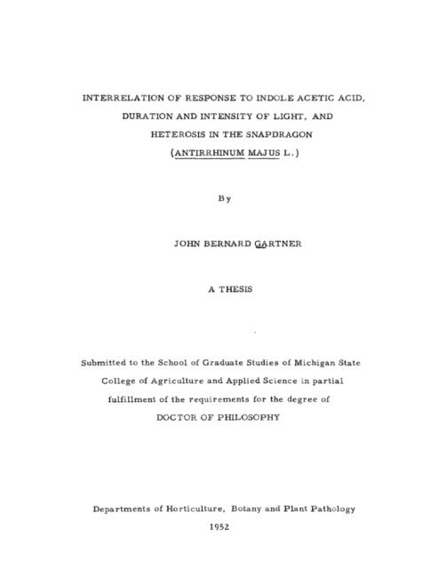 Interrelation of response to indole acetic acid duration and intensity of light, and heterosis in the snapdragon (Antirrhinum majus L.)