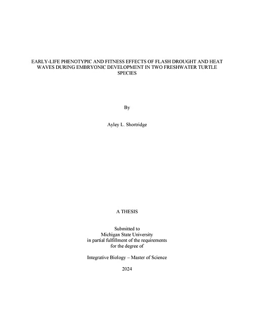 Climate change is causing rapid shifts in temperature and precipitation patterns worldwide, including more frequent extreme climate events (ECEs) such as flash droughts and heat waves. ECEs can have severe ecological impacts, as temperature and water availability play critical roles in the survival, growth, and functioning of living organisms. Environmental conditions experienced during embryonic development can have lasting phenotypic and fitness consequences, yet the effects of drought and heat waves at this key life stage are not well defined, particularly in vertebrates. Turtles (order Testudines) are particularly susceptible to early-life impacts of drought and heat waves. Embryos have little protection from unfavorable hydric and thermal conditions in the nest, and overall egg and hatchling mortality is high. In my thesis, I investigated the effects of flash drought and heat waves during embryonic development on offspring traits and survival in two freshwater turtle species. I chose to focus on common snapping turtles (Chelydra serpentina) and painted turtles (Chrysemys picta) in order to compare taxa with contrasting life history traits. For my first chapter, I incubated C. serpentina eggs under varying hydric conditions to simulate flash drought at different embryonic stages and identified time-dependent effects on incubation time and hatchling size. I then conducted an experimental release in the field, which revealed that flash drought during late incubation decreased hatchling survival. For my second chapter, I examined the independent and interactive effects of flash drought and heat wave events during embryonic development in C. picta, finding effects on hatching phenology and body size. Moreover, survival increased with body size during dispersal from the nest. My findings shed light on the potential ecological consequences of extreme climate events in oviparous ground-nesting vertebrates.