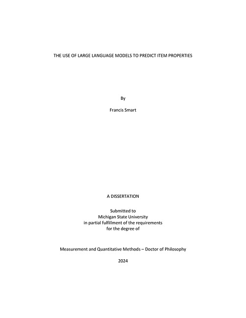 THE USE OF LARGE LANGUAGE MODELS TO PREDICT ITEM PROPERTIES