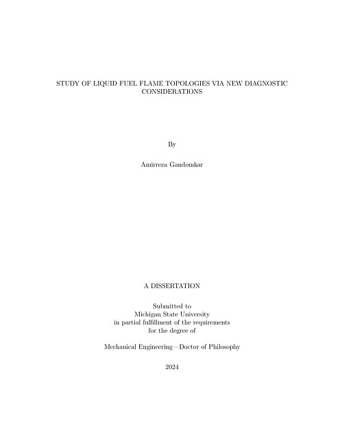 STUDY OF LIQUID FUEL FLAME TOPOLOGIES VIA NEW DIAGNOSTIC CONSIDERATIONS