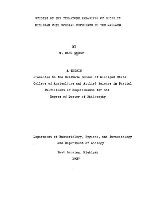 Studies on the trematode parasites of ducks in Michigan with special reference to the mallard