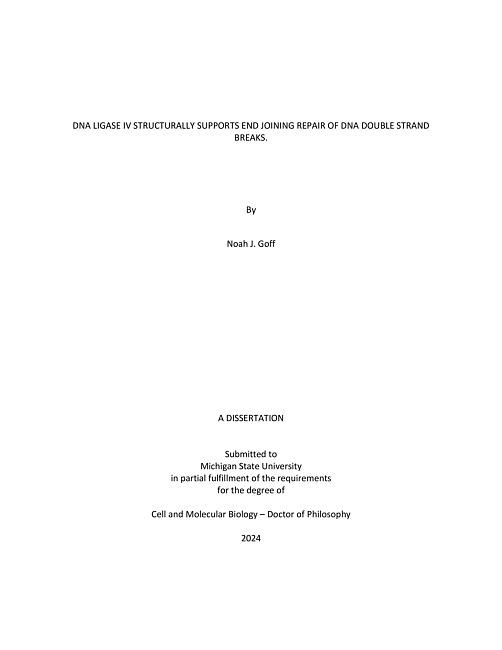 DNA LIGASE IV STRUCTURALLY SUPPORTS END JOINING REPAIR OF DNA DOUBLE STRAND BREAKS.