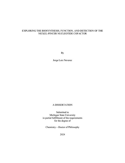 EXPLORING THE BIOSYNTHESIS, FUNCTION, AND DETECTION OF THE NICKEL-PINCER NUCLEOTIDE COFACTOR