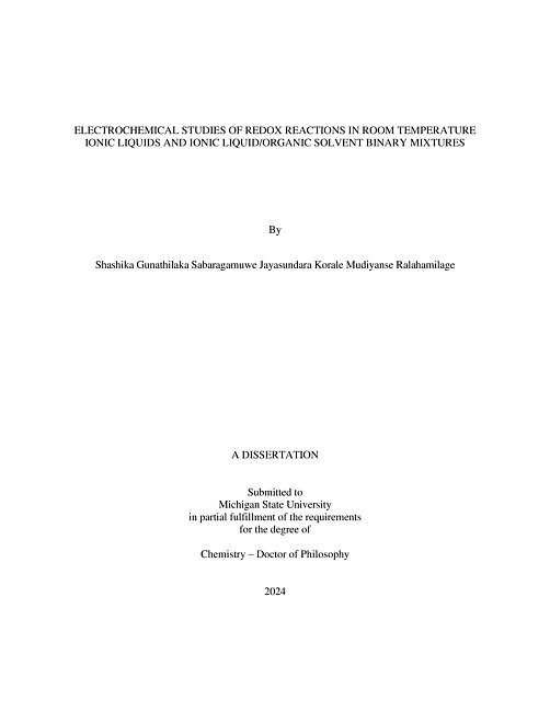 ELECTROCHEMICAL STUDIES OF REDOX REACTIONS IN ROOM TEMPERATURE IONIC LIQUIDS AND IONIC LIQUID/ORGANIC SOLVENT BINARY MIXTURES