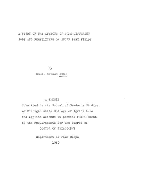 A study of the effects of some different sods and fertilizers on sugar beet yields