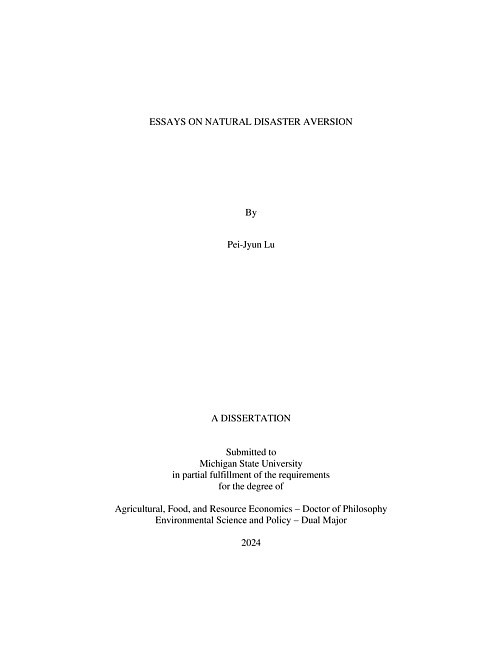 Natural disasters cause significant economic losses and death tolls worldwide. In the United States alone, weather-related disasters have cost over $2.5 trillion in the past four decades, with increasing severity over time. Governments implement disaster risk reduction policies to mitigate these impacts by promoting avoidance behaviors, reducing exposure, and minimizing damage to people, crops, and property. However, critical questions remain understudied: Do these policies effectively reduce weather-related impacts? How can their efficacy be evaluated? What drives governments to terminate ineffective policies? This dissertation addresses these questions and provides insights for policymakers.The first chapter, “Tropical Cyclone Day-Off Orders, Warnings, and Avoidance Behavior,” examines Taiwan's day-off policy during tropical cyclones, which allows residents to avoid exposure to strong winds, landslides, and flooding. Using transportation data as a proxy for avoidance behavior, the analysis reveals that while mandatory day-off orders reduce exposure, people may take similar actions even without them. Comparing Taiwan with Miami-Dade County, Florida, the study finds similar avoidance patterns in areas without mandatory orders. These findings suggest that providing reliable information may allow individuals to make informed decisions, reducing unnecessary disruptions. The second chapter, “Efficacy Analysis of Cloud Seeding Programs in Kansas Agriculture,” evaluates cloud seeding as a hail suppression strategy for protecting crops in Kansas, a state prone to severe hailstorms. The findings show that cloud seeding reduces hailstorm intensity but does not significantly lower crop loss ratios, as hailstones remain large enough to cause damage. Additionally, cloud seeding unintentionally increases flood-related crop losses and exhibits spillover effects, reducing downwind counties’ sorghum productivity. Despite a positive net present value overall, these spillover effects lead to negative net present value in downwind counties, complicating the program's cost-benefit profile. The third chapter, “Factors Influencing Policy Termination,” investigates the determinants of policy termination using Kansas' cloud seeding program as a case study. Analysis reveals that counties experiencing higher hail-induced crop losses are more likely to terminate the program, reflecting its perceived inefficacy. Furthermore, neighboring counties' termination decisions delay the termination process, aligning with diffusion theory, which posits that governments learn from neighbors’ experiences. This study highlights the role of inefficacy and policy diffusion in driving termination decisions. In conclusion, this dissertation explores the effectiveness and sustainability of disaster risk reduction policies through the lens of two case studies: Taiwan’s tropical cyclone day-off orders and Kansas’ cloud seeding program. The findings emphasize the importance of rigorous evaluation to improve policy design and highlight the need for continued research into innovative risk reduction strategies to enhance resilience against natural disasters.