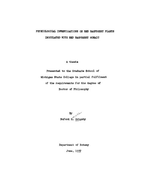 Physiological investigations of red raspberry plants inoculated with red raspberry mosaic