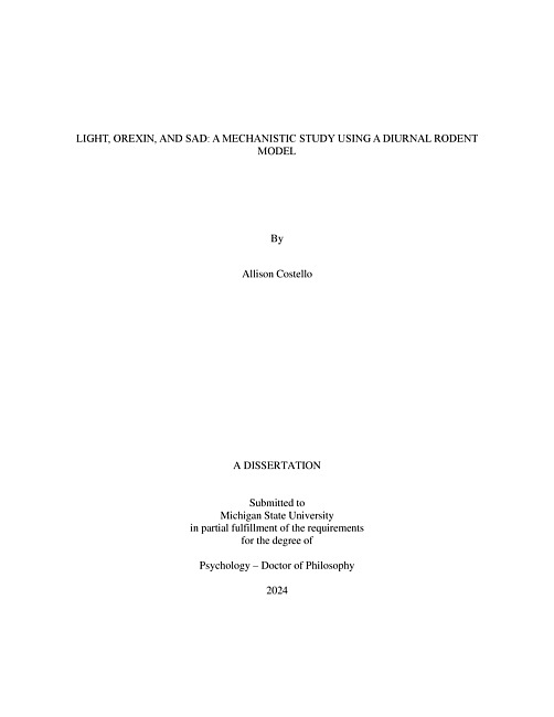 Light, orexin, and SAD : A mechanistic study using a diurnal rodent model