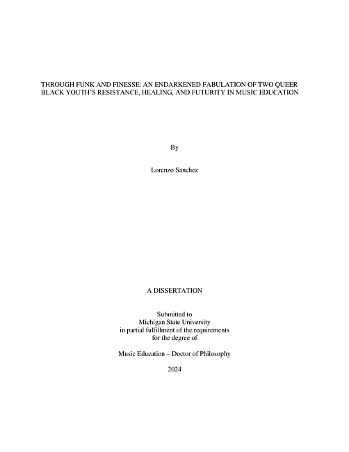 Through funk and finesse : An Endarkened fabulation of two queer Black youth's resistance, healing, and futurity in music education