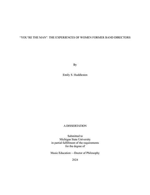 Music education researchers have fully established that many women band directors experience toxicity as a part of their work. The purpose of this study was to understand the experiences of women former high school band directors who chose to move out of high school teaching and into collegiate music education. Research questions were: (1) What factors or elements of women band director experiences influenced women’s decisions to move from high school band directing to collegiate music education? (2) What were the women band directors’ experiences of psychological constructs such as, but not limited to impostor phenomenon (IP), vulnerability, perfectionism, and self-efficacy/self-esteem? (3) How do women former band directors make meaning of their experiences? Participants (N=9) were women who left high school band directing and moved into higher education as either music education Ph.D. students or university music education faculty members. All participants had at least five years teaching experience as a high school band director. Using phenomenology as a theoretical framework and methodology, I explored the lived experiences of participants by analyzing their responses from three, semi-structured interviews. Findings indicated that challenges related to the old boys’ club, the need to police gender, being stereotyped into other roles based on gender, and time commitments as a barrier to work-life balance were influential in women band directors’ desires to leave high school band directing. Women were also motivated to leave based on their desire to seek new challenges and their love of working with student teachers. Based on women’s experiences of psychological constructs, findings indicated that IP, perfectionism, vulnerability, and self-efficacy/self-esteem immensely influenced the experiences of women high school band directors in their K-12 work, but also in some of their graduate school and collegiate work experiences. IP helped explain some women’s insecurities regarding their band directing abilities and in combination with perfectionism provided insight into some participants’ needs for validation in their work. Some participants found the perceptions of others to be a hindrance to their ability to be vulnerable, creating further needs to take on a different persona. Self-efficacy/self-esteem influenced the work of women band directors based on their feelings of needing to trust themselves more, how their self-worth influenced their work, and frustrations about the title of “doctor” not being honored outside of the academic community. Participants also discussed meaning-making through various kinds of reflection, reflection over time, and working through stages of grief and acceptance. Critical reflective processes allowed participants to use their meanings made in their collegiate work educating preservice and new teachers. Findings further indicated that patriarchal power was a harmful negative influence on participants’ band directing experiences, in some cases prompting their career moves into higher education. Suggestions for future practice included further work to understand psychological constructs and the impact of oppressive systems so that teacher educators can decide on the most crucial information to include in their teacher preparation. I also provided suggestions to aid music teacher educators in helping preservice teachers learn to identify and work against the negative manifestations caused by psychological constructs such as those discussed in this study.