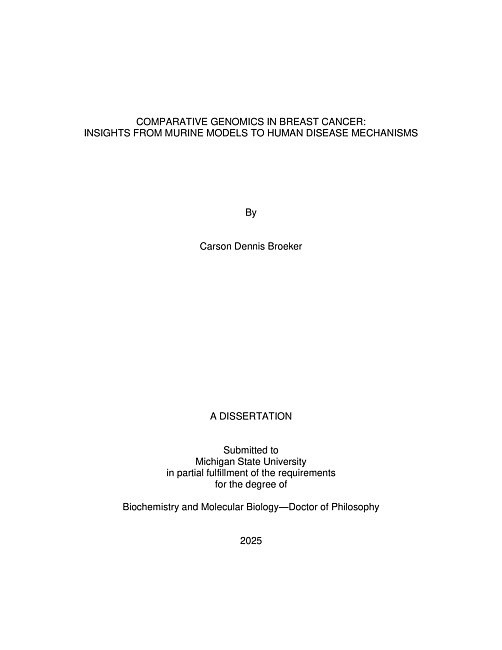 COMPARATIVE GENOMICS IN BREAST CANCER : INSIGHTS FROM MURINE MODELS TO HUMAN DISEASE MECHANISMS