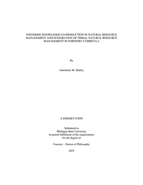 FOSTERING KNOWLEDGE CO-PRODUCTION IN NATURAL RESOURCE MANAGEMENT AND INTEGRATION OF TRIBAL NATURAL RESOURCE MANAGEMENT IN FORESTRY CURRICULA