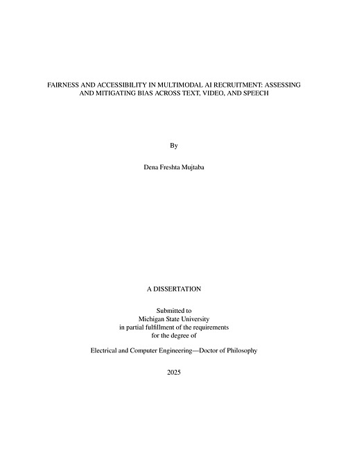 Artificial intelligence (AI) is rapidly reshaping how people work, with up to 30% of work activities projected to be automatable by 2030. As of 2024, 42% of enterprise organizations have adopted AI in their operations, and half of surveyed companies now incorporate AI into their hiring processes—a figure projected to rise to 68% within the next year. These systems are now used to automate resume screening, conduct chatbot-based interviews, and evaluate candidate personality traits and skills through video analysis. While they offer efficiency and scalability, their growing role in high-stakes employment decisions has raised serious concerns about fairness, transparency, and accessibility. In particular, AI-driven recruitment systems have demonstrated tendencies to reinforce gender biases and disadvantage individuals with speech disfluencies, such as stuttering. This dissertation addresses these challenges by examining the fairness and effectiveness of AI systems across three key modalities—text, video, and speech—and proposes novel strategies to mitigate bias across all three.Specifically, it makes three core contributions spanning adaptive assessments, automated video interview scoring, and accessibility in speech-based technologies:First, we develop a multi-objective optimization framework for computerized adaptive testing that balances precision, test length, content coverage, item exposure, and fairness. By integrating evolutionary algorithms and large language models, our approach reduces assessment time without sacrificing accuracy, while also examining fairness trade-offs related to item exposure, memorization, and shortened assessments.Second, we introduce a multimodal, multi-task deep neural network that predicts OCEAN personality traits from video interviews more efficiently than existing models. To measure and mitigate bias, we implement a counterfactual fairness framework using generative adversarial networks, enabling us to evaluate how changes to protected attributes (e.g., gender, age) affect model predictions. This ensures fairer treatment across demographic groups in personality-based scoring systems.Third, we conduct a first-of-its-kind analysis of bias in automatic speech recognition (ASR) systems against individuals who stutter—a group historically underserved and disadvantaged by voice-based technologies. Using both synthetic and real-world data, we identify significant accuracy disparities in commercial and open-source ASRs. To address these, we propose a two-stage bias mitigation strategy: (1) fine-tuning pre-trained ASRs with disfluency-augmented data using parameter-efficient methods, and (2) correcting ASR transcript errors using large language models with retrieval-augmented generation. To support this work, we developed a novel cloud-based data collection platform to build one of the largest datasets of stuttered speech to date, collected across diverse speakers and application contexts.Overall, this dissertation provides a comprehensive roadmap for improving fairness, accessibility, and efficiency in AI-based recruitment, offering actionable strategies for organizations aiming to build fair, inclusive, and effective hiring pipelines in an increasingly AI-driven world.