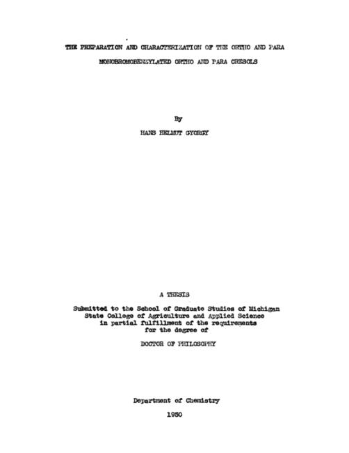 The preparation and characterization of the ortho and para monobromobenzhylated ortho and para cresols