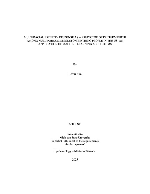 Multiracial identity response as a predictor of preterm birth among nulliparous, singleton birthing people in the US : An application of machine learning algorithms