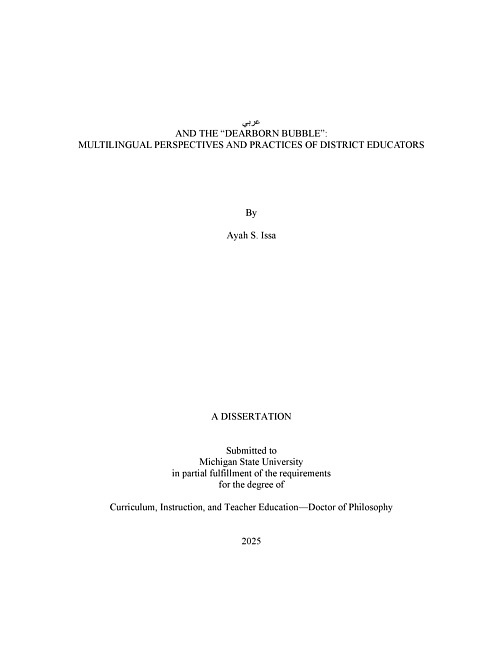 عربي AND THE “DEARBORN BUBBLE” : MULTILINGUAL PERSPECTIVES AND PRACTICES OF DISTRICT EDUCATORS