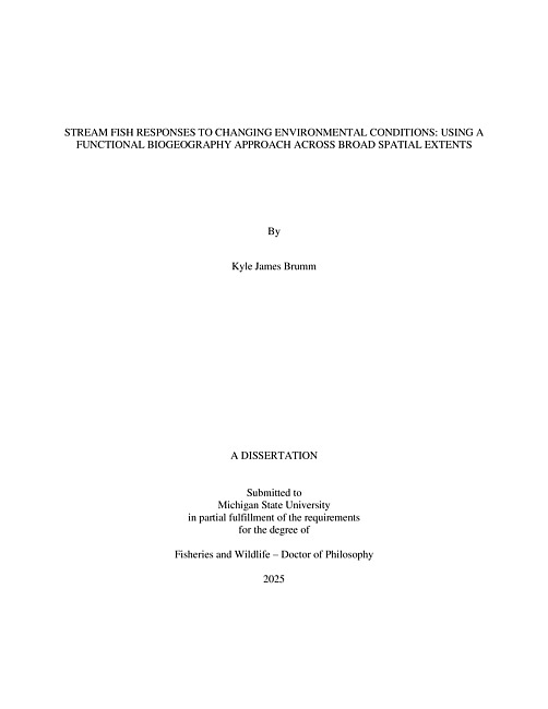 STREAM FISH RESPONSES TO CHANGING ENVIRONMENTAL CONDITIONS : USING A FUNCTIONAL BIOGEOGRAPHY APPROACH ACROSS BROAD SPATIAL EXTENTS