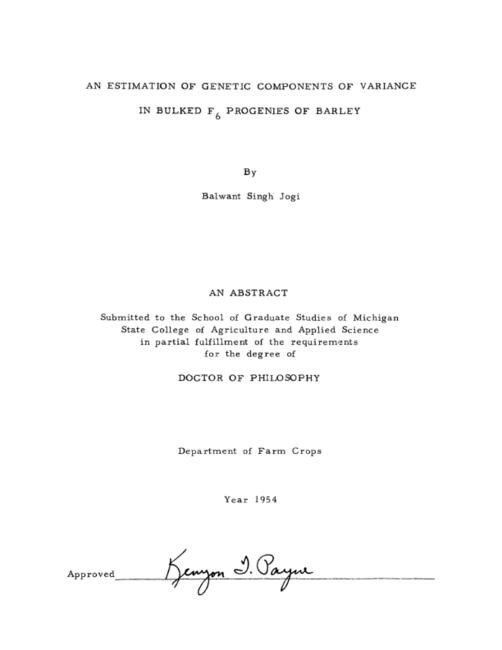 An estimation of genetic components of variance in bulked F6 progenies of barley