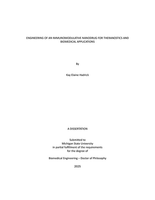 ENGINEERING OF AN IMMUNOMODULATIVE NANODRUG FOR THERANOSTICS AND BIOMEDICAL APPLICATIONS