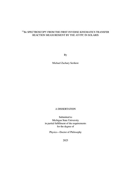 As evidenced by the field’s existence surpassing a 100 years, nuclei are varied and immensely complex. New accelerator facilities are now able to produce rare isotopes that seldom appear in nature and whose properties must be measured to lead to a better understanding of the nuclear force. These facilities have naturally facilitated the need to switch to inverse kinematics. This, coupled with the low intensity of rare isotope beams, has lead to the creation of a new type of detector called an active target. These detectors are especially well-suited for rare isotope beams due to their high luminosity, theoretical 4? solid angle coverage, and ability to determine the vertex of a nuclear reaction.One such active target is the Active Target-Time Projection Chamber (AT-TPC) housed at the Facility for Rare Isotope Beams. This thesis reports the results from the first transfer reaction measurement by the AT-TPC in inverse kinematics. Specifically, 11Be spectroscopy was performed via the 10Be(?, ?) reaction. 11Be is an ideal candidate for such a commissioning measurement as the structure of its low-lying states is well known, allowing for comparisons to the literature. Despite this, the parity of its fourth excited state at 3.40 MeV has been debated. This thesis measured the angular distributions of all states in 11Be up to and including this state. Their spectroscopic factors were derived and compared to values in the literature and theoretical shell-model interactions. Reasonable agreement was found between the average derived factors, literature, and WBP and YSOX calculations. Although the coverage of the 3.40 MeV state’s angular distribution is too limited for a definitive parity assignment, it and the spectroscopic analysis tentatively support a positive parity. The implications of this assignment on the rotational structure, 0?3/2 effective single-particle energy, and spin-orbit splitting of the 0? orbitals in 11Be are explored.